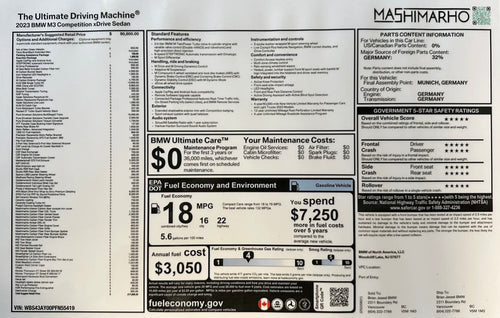 Custom BMW Window Label Monroney (with mods)